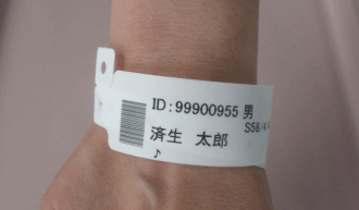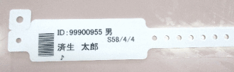 当院では、患者さんの誤認を防止するために、入院患者(一部の外来患者)さんに、氏名・生年月日で記載したリストバンドを装着させていただきます。