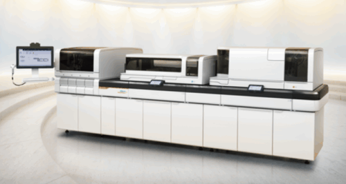 当院では免疫検査と生化学検査の分析装置を一体化した統合分析装置を導入することで業務を効率化し、外来患者さんの採血結果待ち時間の短縮に寄与しています。