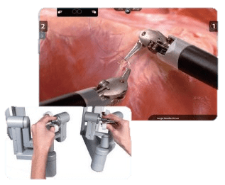 従来の腹腔鏡手術と同じように、いくつかの小さな切開部を作り、外科医の操作に従って内視鏡・メス・鉗子を動かして手術を行う低侵襲手術支援ロボットです。